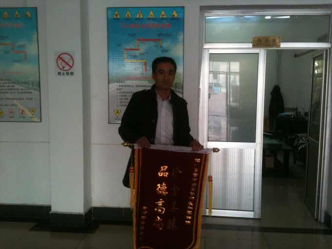 2013年10月29日,黃河固井隋增凱師傅拿著一面寫(xiě)有“拾金不昧、品德高尚”的錦旗來(lái)到市公交公司汽車一隊(duì),感謝車隊(duì)張如軍師傅拾金不昧的高尚品德。