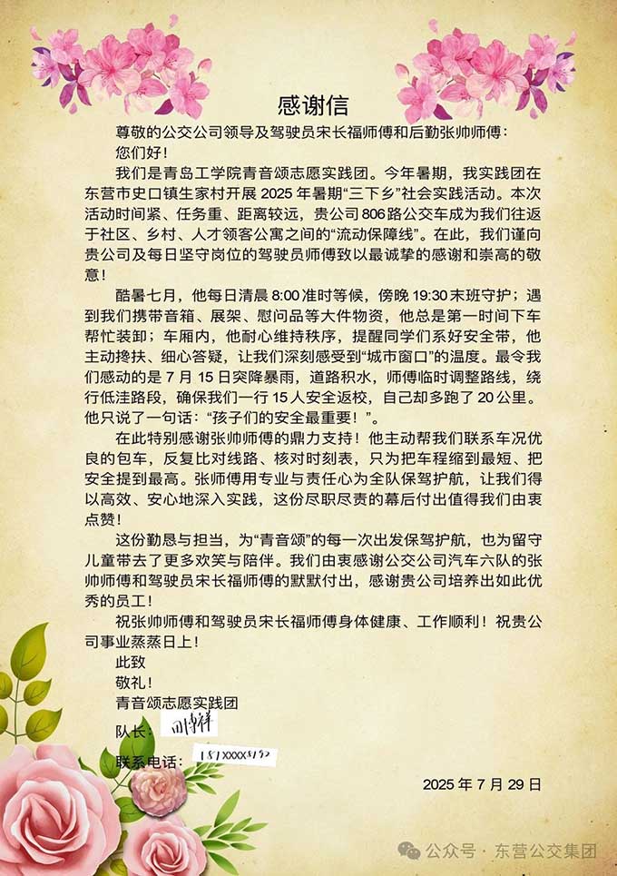 圓夢(mèng)高考|“你們?nèi)σ愿?,我們?nèi)套o(hù)航!”為保障高考期間交通順暢有序,東營(yíng)市公交集團(tuán)以高度的責(zé)任感提前布局、周密安排,傾力打造安全、高效的送考保障體系,誓為全市考生鋪就一條平安赴考的坦途。市公交集團(tuán)選拔駕駛經(jīng)驗(yàn)豐富且服務(wù)意識(shí)突出的優(yōu)秀駕駛員...[查看更多>>]更多>>> 最新公告