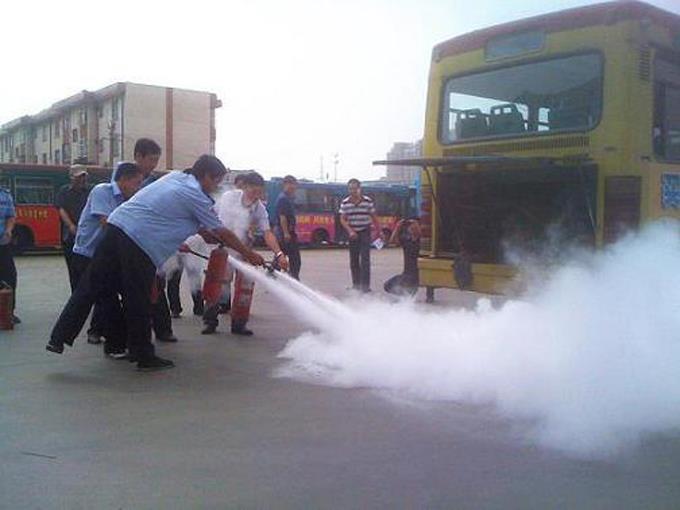 演練前,車隊領(lǐng)導景洪培同志首先講解了公交車發(fā)生火災的幾種情況和特點、遭遇突發(fā)火災時應對的措施、步驟以及應重點注意的事項,救火時應先做什么,后做什么,應該怎么做,需要提醒乘客什么,必要時讓乘客提供什么樣的幫助等一系列的問題。并再三強調(diào)要求駕駛員做好日常兩檢(出車前、收車后)和例查(油電路、滅火器、安全錘),把消防工作重點放在預防上。萬一突遇車輛火災,應把保護乘客生命安全,及時沉著冷靜疏導乘客放到第一位,然后再迅速進行滅火,報警,通知車隊等工作。最后,所有參加演練的人員模擬進行了車輛著火后,駕駛員如何停車、開車門、疏導乘客下車,斷電源、正確使用滅火器滅火等一系列的實際操作演練,直到參與的駕駛員都能熟練掌握突遇車輛火災時的搶險程序。