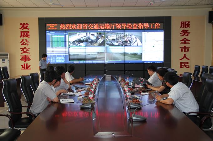 市公交公司經(jīng)理朱新民首先簡要介紹了東營公交智能調(diào)度系統(tǒng)以及3G視頻監(jiān)控系統(tǒng)的建設和使用情況,隨后由工作人員將智能調(diào)度系統(tǒng)和3G視頻監(jiān)控系統(tǒng)的多項功能向李處長及各位領導進行了詳細的講解和演示。