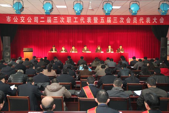 2013年2月27日,市公交公司隆重召開了二屆三次職工代表暨五屆三次會(huì)員代表大會(huì)。公司領(lǐng)導(dǎo)朱新民、李學(xué)忠、趙龍、崔磊、劉海、劉樂華、孫紅光及74名代表參加了會(huì)議。