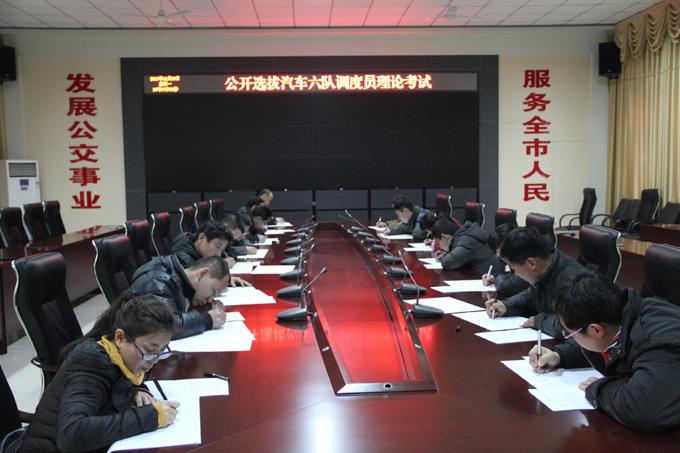2013年12月底,市公交公司汽車六隊(duì)3名調(diào)度員公開(kāi)選拔理論考試在公司一樓會(huì)議室開(kāi)考,符合申報(bào)條件的15名員工,在規(guī)定時(shí)間內(nèi)按照給定的5個(gè)題目,圍繞調(diào)度職責(zé)、如何做好運(yùn)營(yíng)調(diào)度工作等相關(guān)內(nèi)容進(jìn)行了認(rèn)真答卷。本著公開(kāi)、公正的原則,由公司領(lǐng)導(dǎo)班子、人事科長(zhǎng)、所在車隊(duì)負(fù)責(zé)人組成的評(píng)委對(duì)密封試卷現(xiàn)場(chǎng)評(píng)分后,對(duì)理論成績(jī)排名前6名的同志當(dāng)場(chǎng)進(jìn)行了民主評(píng)議。最后,張東衛(wèi)、張光輝、潘志紅3名同志理論成績(jī)、民主評(píng)議綜合得分排名居前三位。經(jīng)過(guò)3天公示無(wú)異議后,3名同志已于2014年1月3日到崗培訓(xùn)。