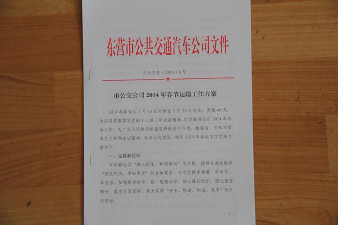 2014年春運從1月16日開始至2月24日結(jié)束,為期40天。為認真貫徹落實黨的十八屆三中全會精神,切實做好2014年春運工作,為廣大市民創(chuàng)造良好的出行環(huán)境,根據(jù)省、市和市局有關文件和會議精神,結(jié)合工作實際,市公交公司成立了春運領導小組,提前做好了線路調(diào)查,加強了預測分析,圍繞“融入民生、和諧春運”的主題,堅持早部署、早動員、早安排,制定了2014年春運工作實施方案,努力實現(xiàn)“安全、暢通、和諧、有序”的工作目標。