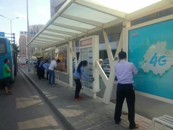 公交候車亭上面粘有透明膠、不干膠、漿糊等,有的候車亭燈箱還被糊上了好幾層廣告,黨員們手拿小鏟子、小刷子、清潔球、水桶等清除工具,三人一組、兩人一伙,有的噴水,有的用鏟刀用力清除,一個(gè)個(gè)干的熱火朝天。經(jīng)過三個(gè)多小時(shí)的清理,西四路兩側(cè)公交候車亭衛(wèi)生死角和野廣告被清理干凈,市民的候車環(huán)境衛(wèi)生得到很大改觀。在候車亭等車的市民們高興地說:“站牌上到處都是小廣告,各種顏色的,像牛皮癬一樣討厭,這些黨員真能干,小廣告沒有了,在候車亭等車心情也舒暢了?!?BR> 通過本次活動(dòng),黨員們用自己的實(shí)際行動(dòng)為清潔公交候車亭、愛護(hù)公共環(huán)境作出了努力,使公交候車亭外觀得到了凈化,營造了一個(gè)整潔美觀、文明和諧的候車環(huán)境,增強(qiáng)了黨組織的凝聚力和戰(zhàn)斗力,從而使黨員們更好地踐行黨員先鋒模范作用,得到了市民們的一致好評。
