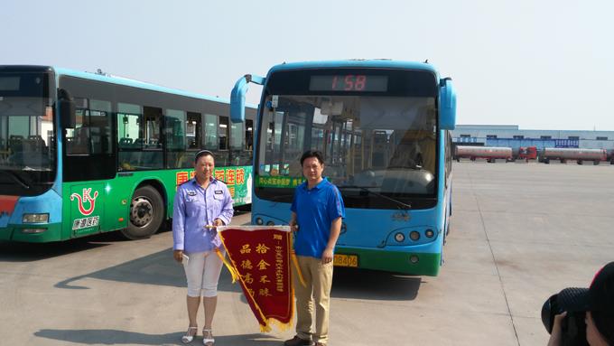 7月14日下午,乘客周磊先生拿著一面寫(xiě)有“拾金不昧、品德高尚”的錦旗來(lái)到市公交公司汽車(chē)五隊(duì),特來(lái)對(duì)車(chē)隊(duì)駕駛員劉景妲師傅拾金不昧的行為表示感謝。