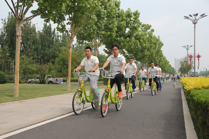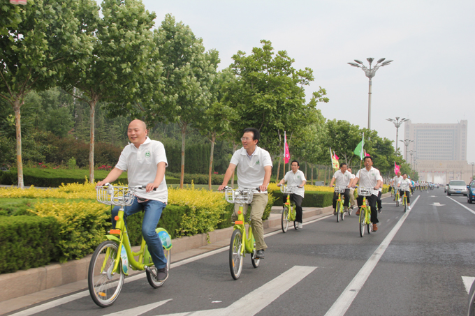 上午九時(shí),來自市公交公司和環(huán)保局的70余名志愿者匯集在黃河影劇院停車場(chǎng),統(tǒng)一騎行公共自行車,身著統(tǒng)一環(huán)保T恤,由黃河影劇院出發(fā),行經(jīng)府前大街—?jiǎng)倮蠼帧獮H河路—東三路等東城區(qū)主要繁華路段,開展了浩浩蕩蕩的綠色騎行宣傳活動(dòng)。