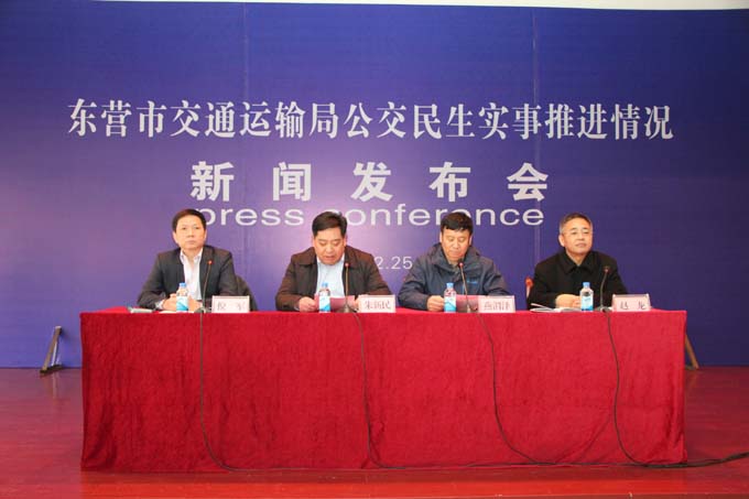 12月25日上午9點(diǎn)30分,東營(yíng)市交通運(yùn)輸局公交民生實(shí)事新聞發(fā)布會(huì)在市公交公司舉行,主要是通報(bào)2016年度公交各項(xiàng)民生實(shí)事工作的推進(jìn)情況。東營(yíng)市交通運(yùn)輸局黨委委員、副局長(zhǎng)燕渭澤、東營(yíng)市公交公司副經(jīng)理趙龍、北京中航訊股份科技有限公司總經(jīng)理倪軍以及來自東營(yíng)電視臺(tái)、東營(yíng)日?qǐng)?bào)社、大眾網(wǎng)、齊魯晚報(bào)、黃河口晚刊等9家新聞媒體記者出席了新聞發(fā)布會(huì)。會(huì)議由東營(yíng)市公交公司黨委書記、經(jīng)理朱新民主持。
