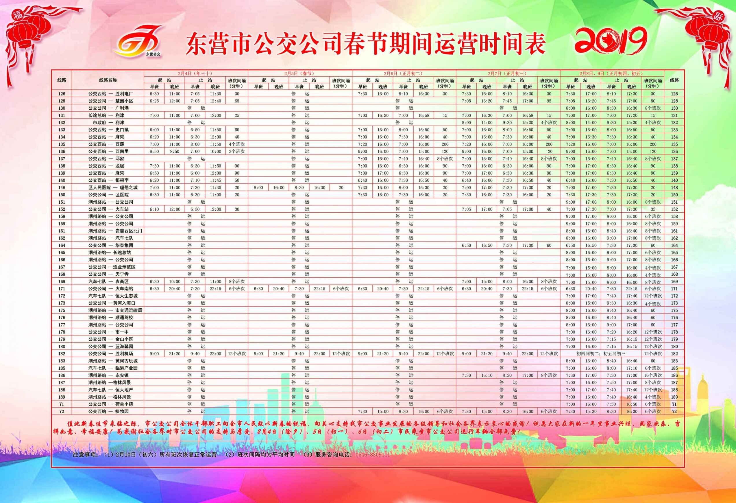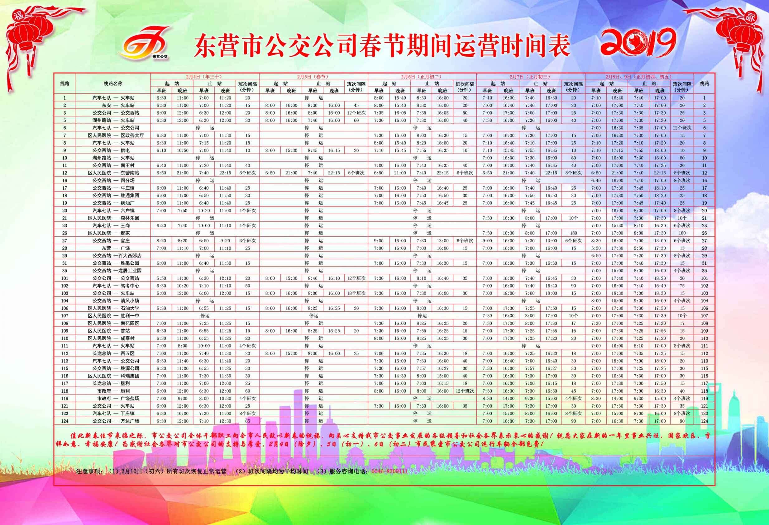 2019年東營市公交公司春節(jié)期間運(yùn)營時刻表2