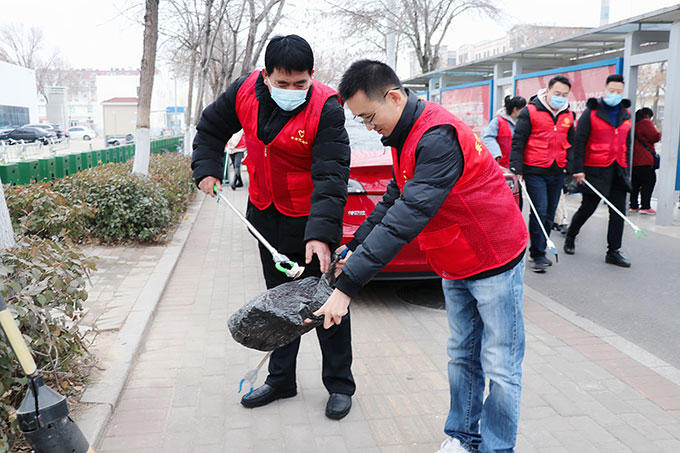 大家認真清理路邊角落里的煙頭,建筑物下的雜物,院落門前的垃圾。雖然天氣寒冷,但大家干勁十足。公交志愿者用垃圾夾、掃帚等工具,對責任區(qū)內的垃圾進行全面清理,撿到的垃圾都隨手放進提前備好的垃圾袋中,或直接投入附近的垃圾箱里,努力做到責任區(qū)內無明顯積存垃圾,無亂貼亂畫,環(huán)境整潔。根據(jù)疫情防控需要,參加義務勞動的志愿者們均佩戴了口罩,積極響應國家號召,做好疫情防護工作?!霸谝咔榉雷o的特殊時期,也算是勞中作樂吧?!边@積極的勞動態(tài)度也讓大家更有動力參加義務勞動了。