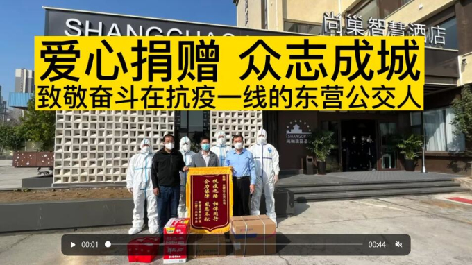 近日,在我市疫情防控的關(guān)鍵時(shí)刻,東營(yíng)區(qū)群眾代表郭永軍捐贈(zèng)一批愛(ài)心物資,用于疫情防控工作,為抗疫工作貢獻(xiàn)自己的力量,并向奮戰(zhàn)在抗疫一線的東營(yíng)公交人送錦旗表示感謝,用真情和愛(ài)心傳遞社會(huì)正能量,助力疫情防控工作。