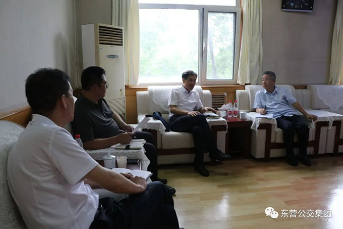 2023年7月31日上午,市黃河燃?xì)夤鹃T廣利一行到東營(yíng)公交集團(tuán)就公交燃?xì)馊剂瞎┬柽M(jìn)行洽談交流,集團(tuán)公司趙龍同志出席洽談會(huì)。