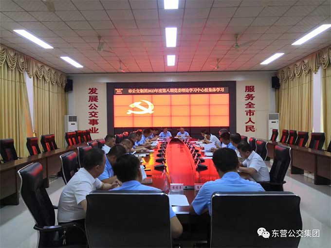 2023年8月26日下午14時30分,市公交集團(tuán)在辦公樓一樓會議室組織2023年度第八期黨委理論學(xué)習(xí)中心組集體學(xué)習(xí),趙龍同志主持會議并講話,集團(tuán)公司黨委成員、各支部書記以及學(xué)習(xí)秘書參加集體學(xué)習(xí)。