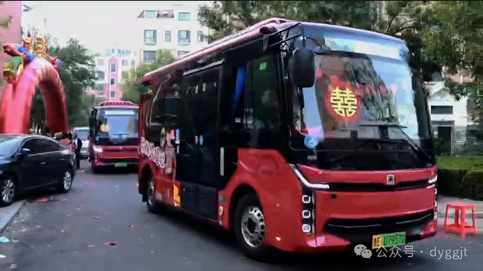 這兩輛公交車跟隨著迎親隊(duì)伍,高調(diào)得“秀恩愛”,吸引了無數(shù)的目光和祝福。寬敞的車廂,可以輕松容納一眾親朋好友,笑聲、祝福聲此起彼伏,為新人的幸福時刻,增添了更多的溫馨色彩。