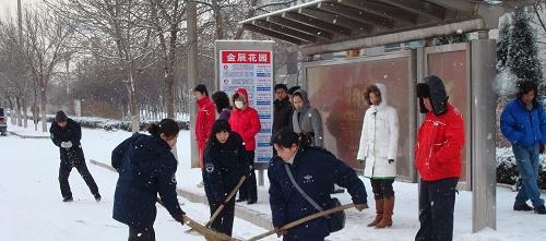 汽車七隊(duì)職工到公交站點(diǎn)清掃積雪