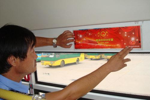國(guó)慶節(jié)來(lái)臨之際,汽車七隊(duì)8路車組在車廂張貼“和諧中華60華誕”、“喜迎60周年國(guó)慶慶典”的慶國(guó)慶宣傳貼,為車廂增添了濃厚的節(jié)日氣氛 。