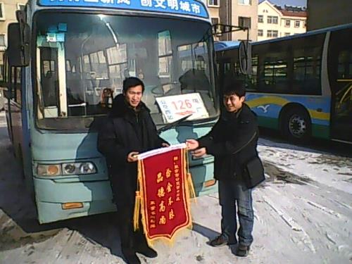 2010年1月6日,東營(yíng)車網(wǎng)的劉先生手拿寫有“拾金不昧品德高尚”的錦旗,來(lái)到市公交公司汽車三隊(duì),要求車隊(duì)領(lǐng)導(dǎo)大力表?yè)P(yáng)126路駕駛員劉波。