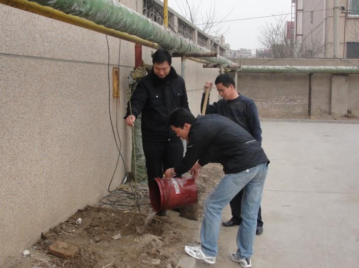 汽車三隊6個線路團(tuán)隊、后勤團(tuán)隊和保修廠團(tuán)隊共同捐資購買了山楂樹、柿子樹、板栗樹和櫻桃樹共計28株,由團(tuán)隊成員分別栽植在西站辦公樓后車場的東墻、北墻和西墻處。