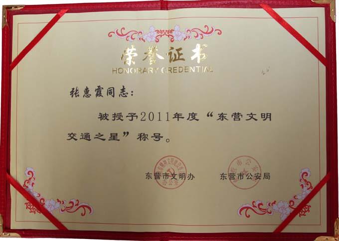 近日,在東營(yíng)市文明辦和東營(yíng)市公安局聯(lián)合組織開(kāi)展的“東營(yíng)文明交通之星”評(píng)選活動(dòng)中,市公交公司張惠霞、劉軍利、楊金光等三名公交駕駛員經(jīng)過(guò)層層選拔在1000余名候選人中脫穎而出,最終獲得了“東營(yíng)文明交通之星”榮譽(yù)稱(chēng)號(hào)。