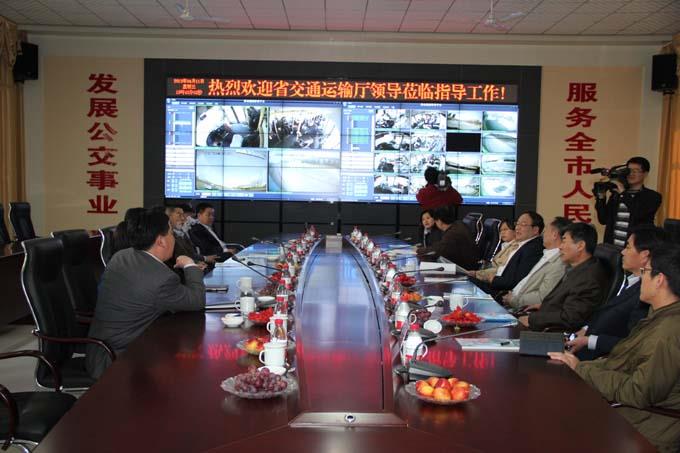 4月11日下午,省交通運(yùn)輸廳副廳長(zhǎng)謝濤一行,在市交通運(yùn)輸局黨委書(shū)記、局長(zhǎng)李兆君、市公路局局長(zhǎng)王泮清、市交通運(yùn)輸局黨委副書(shū)記鄭月成、市公路局副局長(zhǎng)董安林、市運(yùn)管處處長(zhǎng)李??∫约笆泄还窘?jīng)理朱新民等有關(guān)領(lǐng)導(dǎo)的陪同下,到市公交公司對(duì)信息化建設(shè)進(jìn)行了實(shí)地檢查指導(dǎo)。
