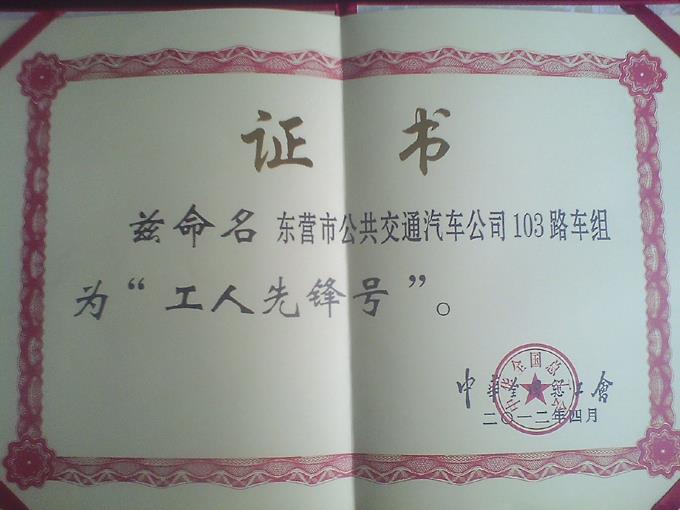 近年來(lái),市公交公司103路車(chē)組人員把優(yōu)質(zhì)服務(wù)作為積極奉獻(xiàn)的目標(biāo),視乘客為親人,愛(ài)崗敬業(yè),無(wú)私奉獻(xiàn),出色地完成了各項(xiàng)營(yíng)運(yùn)生產(chǎn)任務(wù),得到了廣大乘客的一致好評(píng),被親切地稱(chēng)之為“滿意車(chē)”、“放心車(chē)”、“安全車(chē)”。并先后獲得山東省城建行業(yè)“文明服務(wù)標(biāo)兵”、東營(yíng)市五一勞動(dòng)獎(jiǎng)?wù)?、東營(yíng)市“十佳服務(wù)標(biāo)兵”、“市級(jí)工人先鋒號(hào)”、市文明委授予的“全市十佳文明示范窗口”、省總工會(huì)授予的“山東省工人先鋒號(hào)”等多項(xiàng)榮譽(yù)稱(chēng)號(hào),展示了公交駕駛員良好的精神風(fēng)貌,營(yíng)造了和諧文明的社會(huì)氛圍。