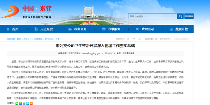 2014年9月19日東營市政府網(wǎng)站報道