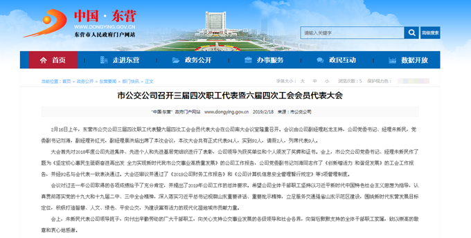 2019年2月11日東營市政府網(wǎng)站報道