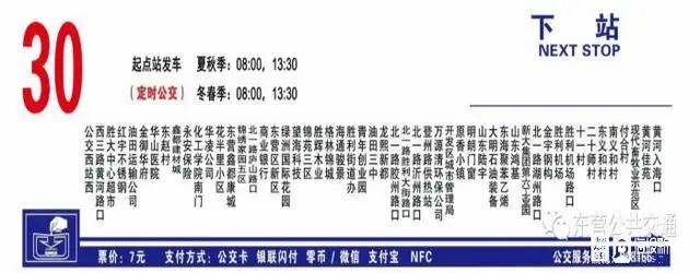 30路公交車路線:公交西站西 至 黃河入海口,發(fā)車時(shí)間:08:00、13:30(夏秋季)08:00、13:30(冬春季)。